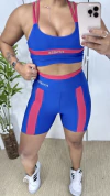 Confeccionado em tecido suplex, o conjunto conta com um top trançado nas costas e bojo removível. É ideal para quem veste do 38 ao 42, garantindo conforto e suporte sem transparência.